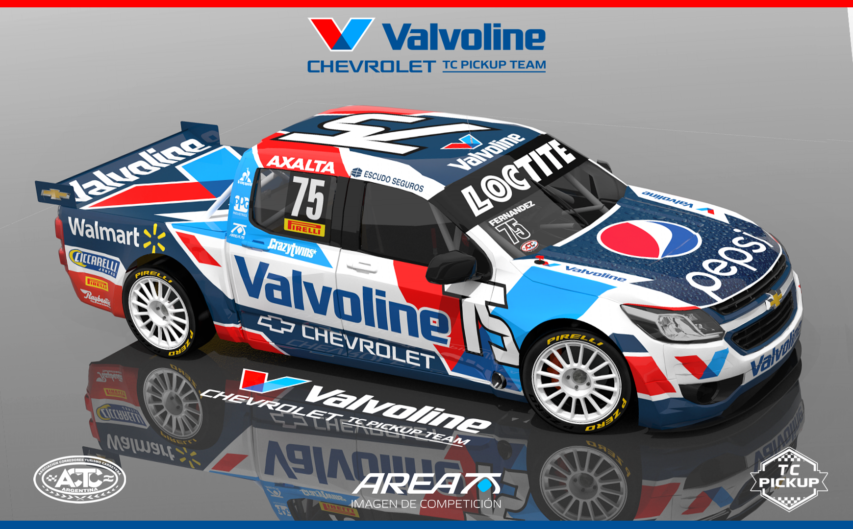 area75 diseña las TC Pickup ACTC del equipo Midas Salvita Carrera Team. Matías Rodríguez conducirá una Toyota Hilux y Diego Ciantini una Fiat Todo.